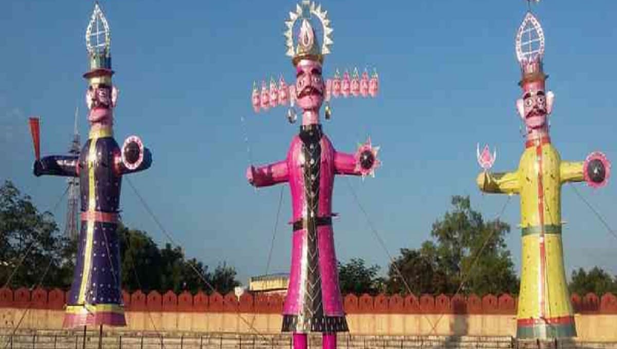 पटना: बिहार की राजधानी पटना के गांधी मैदान में 5 अक्टूबर को असत्य पर सत्य की जीत का प्रतीक विजयादशमी (Vijayadashmi) के मौके पर रावण वध (Ravan Vadh) किया जाएगा. इस कार्यक्रम में गंगा-जमुनी तहजीब की भी झलक दिखती है. पिछले कई सालों से रावण, मेघनाथ और कुंभकर्ण के पुतलों का निर्माण गया के मुस्लिम कारीगरों की टीम द्वारा किया जा रहा है. दशहरा समिति के तत्वावधान में आयोजित रावण वध समारोह में मुख्यमंत्री नीतीश कुमार (Nitish Kumar) और उप मुख्यमंत्री तेजस्वी यादव (Tejashwi Yadav) सहित कई मंत्री शामिल होंगे. कार्यक्रम शाम साढ़े चार बजे शुरू होगा. शाम पांच बजे रावण, कुंभकर्ण व मेघनाथ के पुतले जलाए जाएंगे.