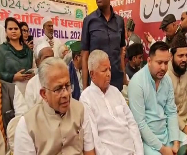 Bihar Politics: पटना: वक्फ संशोधन बिल के खिलाफ ऑल इंडिया मुस्लिम पर्सनल लॉ बोर्ड और देशभर के प्रमुख धार्मिक और सामाजिक मुस्लिम संगठनों ने बुधवार को पटना के गर्दनीबाग में धरना दिया. इस कार्यक्रम में विभिन्न राजनीतिक दलों के लोग भी पहुंचे. राष्ट्रीय जनता दल के अध्यक्ष लालू यादव और विधानसभा में विपक्ष के नेता तेजस्वी यादव भी धरना स्थल पहुंचे और इन संगठनों का पुरजोर समर्थन करने की घोषणा करते हुए बिल के विरोध करने की बात कही.