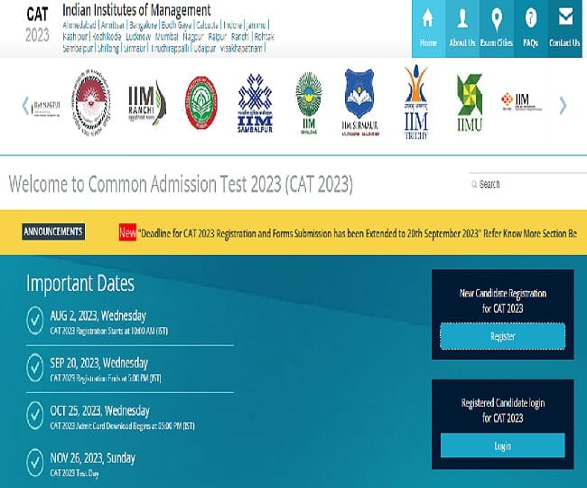 CAT 2023 Registration: कॉमन एडमिशन टेस्ट (CAT) का आयोजन 26 नवंबर को किया जाना है. इस परीक्षा में शामिल होने के लिए ऑनलाइन रजिस्ट्रेशन की प्रक्रिया 2 अगस्त से जारी है. पूर्व में रजिस्ट्रेशन करने की लास्ट डेट 13 सितंबर थी. जिसे बाद में विस्तारित कर 20 सितंबर किया गया था. 20 सितंबर को शाम 5 बजे रजिस्ट्रेशन विंडो बंद कर दी जाएगी. ऐसे में, उम्मीदवारों को अब जरा भी देरी नहीं करनी चाहिए. ऑनलाइन आवेदन के लिए अभ्यर्थियों को ऑफिशियल वेबसाइट, iimcat.ac.in पर विजिट करना होगा.