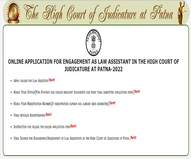 Patna High Court Recruitment 2022: पटना हाईकोर्ट ने लॉ असिस्टेंट के पदों पर भर्ती के लिए नोटिफिकेशन जारी किया है. ऑफिशियल वेबसाइट पर ऑनलाइन आवेदन की प्रक्रिया 1 जून से शुरू हो चुकी है. इच्छुक व पात्र उम्मीदवार वेबसाइट पर जाकर अप्लाई कर सकते हैं. आवेदन करने की आखिरी तारीख 23 जून 2022 है.