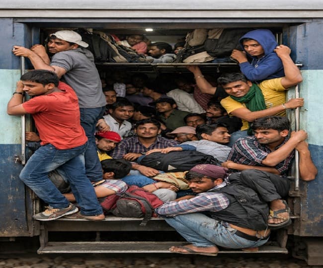 Holi Festival Travel Rush: होली का त्योहार नजदीक आते ही बिहार लौटने वाले प्रवासी मजदूरों और नौकरीपेशा लोगों की मुश्किलें फिर सामने आ गई हैं. देश के अलग-अलग शहरों- दिल्ली, मुंबई, सूरत, पंजाब और बेंगलुरु से बिहार आने वाली ट्रेनों में भारी भीड़ उमड़ रही है. हालत यह है कि एक सीट पर सात से आठ यात्री बैठकर सफर कर रहे हैं, जबकि कई लोग ट्रेन के टॉयलेट के पास या भीतर बैठकर यात्रा करने को मजबूर हैं.