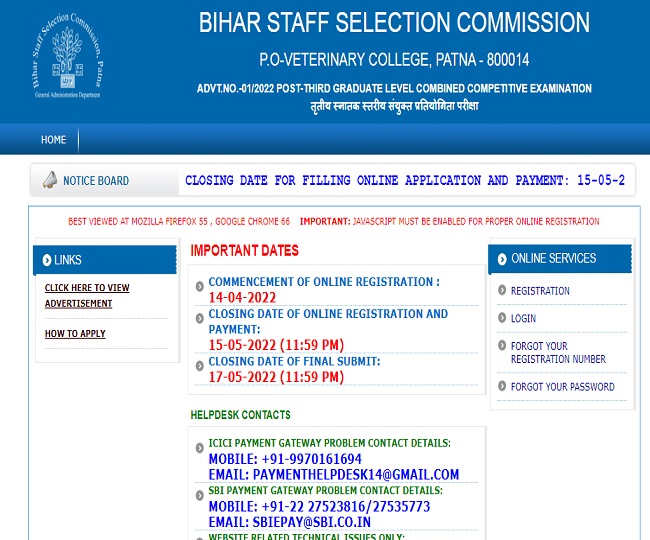 ऑनलाइन अप्लाई करने के लिए ऑफिशियल वेबसाइट, bssc.bihar.gov.in पर विजिट करें. इसके बाद, होमपेज पर दिए गए नोटिस सेक्शन में एंटर करें. यहां संबंधित भर्ती के लिए ऑनलाइन एप्लीकेशन लिंक उपलब्ध है. उम्मीदवार नीचे दिए गए डायरेक्ट लिंक के माध्यम से भी अप्लाई कर सकते हैं.