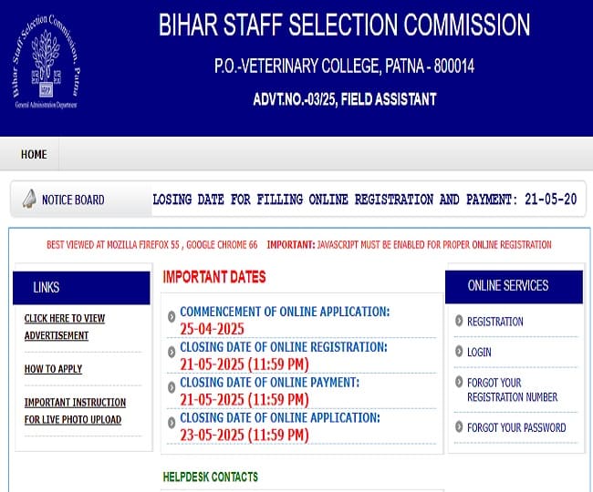 BSSC Field Assistant Recruitment 2025: पटना: बिहार के कृषि क्षेत्र में करियर बनाने के इच्छुक उम्मीदवारों के लिए एक सुनहरा अवसर है. दरअसल बिहार कर्मचारी चयन आयोग ने कृषि विभाग में फील्ड असिस्टेंट के पदों पर भर्ती के लिए नोटिफिकेशन जारी किया था. इसके लिए ऑनलाइन आवेदन 25 अप्रैल से शुरू है. रजिस्ट्रेशन करने की लास्ट डेट 21 मई 2025 है. ऐसे में, पात्र अभ्यर्थियों को अब जरा भी विलंब नहीं करना चाहिए. इस भर्ती के माध्यम से कुल 201 रिक्त पदों को भरा जाएगा. ऑनलाइन अप्लाई करने के लिए उम्मीदवारों को बीएसएससी की ऑफिशियल वेबसाइट, bssc.bihar.gov.in पर विजिट करना होगा. इसके अलावा, नीचे दिए गए डायरेक्ट लिंक के जरिये भी आवेदन की प्रक्रिया पूरी कर सकते हैं.