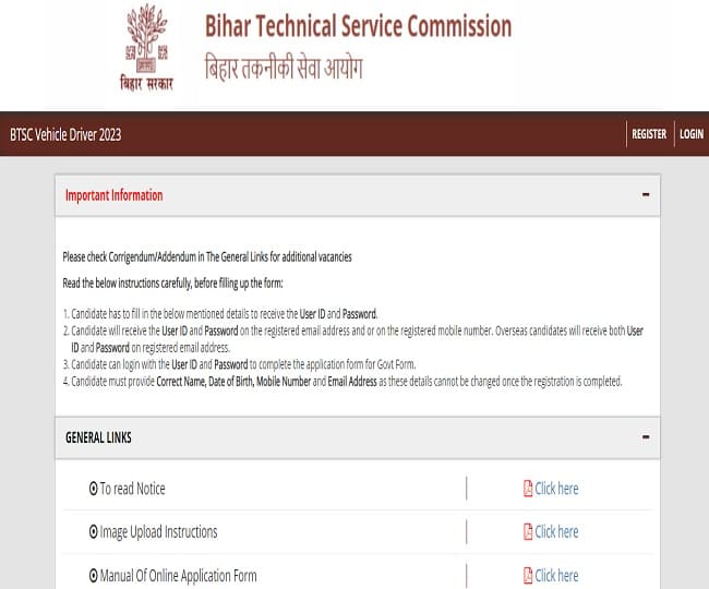 BTSC Driver Recruitment 2023: पटना: बिहार तकनीकी सेवा आयोग (बीटीएससी) ने विभिन्न विभागों में वाहन चालकों (ड्राइवर) की भर्ती के लिए आवेदन आमंत्रित किया है. इस भर्ती के माध्यम से कुल 145 रिक्त पद भरे जाने हैं. ऑनलाइन आवेदन की प्रक्रिया 1 सितंबर से जारी है. आवेदन करने की आखिरी तारीख आज, यानी 30 सितंबर है. ऐसे में, इच्छुक व पात्र उम्मीदवारों को ऑफिशियल वेबसाइट, btsc.bih.nic.in पर जाकर फौरन अप्लाई कर देना चाहिए.