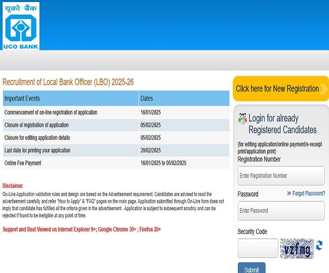 UCO Bank Recruitment 2025: यूको बैंक ने लोकल बैंक ऑफिसर (LBO) के पदों पर भर्ती के लिए नोटिफिकेशन जारी करते हुए आवेदन आमंत्रित किया था. ऑफिशियल वेबसाइट पर ऑनलाइन आवेदन की प्रक्रिया 16 जनवरी 2025 से जारी है. अप्लाई करने की आखिरी तारीख 5 फरवरी 2025 है. ऐसे में, इच्छुक व पात्र उम्मीदवार वेबसाइट पर जाकर बिना विलंब किए अप्लाई कर दें. इस भर्ती के तहत कुल 250 रिक्तियां भरी जानी हैं.