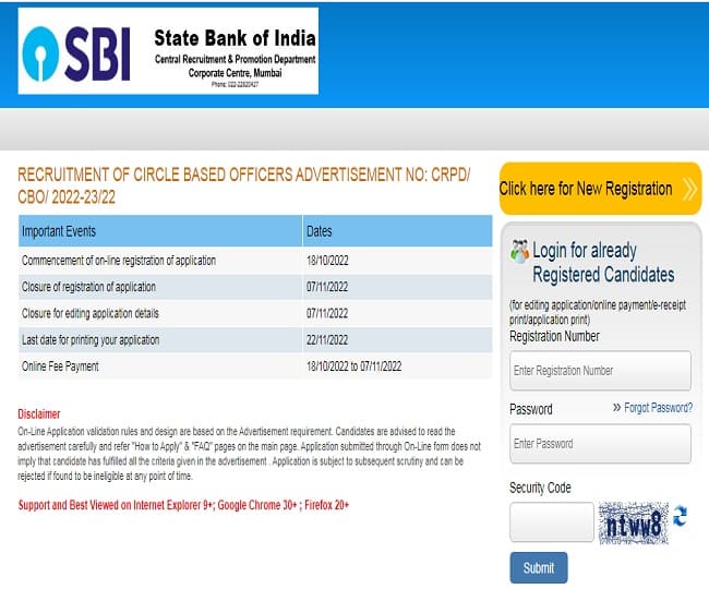 SBI CBO Recruitment 2022: सरकारी बैंक में ऑफिसर बनने के लिए तैयारी कर रहे अभ्यर्थियों के लिए काम की खबर है. स्टेट बैंक ऑफ इंडिया ने सर्किल बेस्ड ऑफिसर के पदों पर भर्ती के लिए आवेदन आमंत्रित किया है. इस भर्ती के माध्यम से कुल 1422 पदों को भरा जाना है. ऑनलाइन आवेदन की प्रक्रिया 18 अक्टूबर से जारी है. आवेदन करने की आखिरी तारीख 7 नवंबर है. इच्छुक व पात्र उम्मीदवार एसबीआई की ऑफिशियल वेबसाइट, sbi.co.in पर जाकर ऑनलाइन अप्लाई कर सकते हैं.