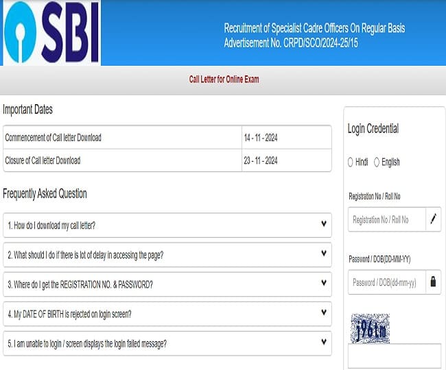 SBI SCO Admit Card 2024: स्टेट बैंक ऑफ इंडिया ने स्पेशलिस्ट कैडर ऑफिसर के पदों पर भर्ती के लिए आयोजित होने वाली लिखित परीक्षा (ऑनलाइन एग्जाम) का एडमिट कार्ड जारी कर दिया है. एसबीसीई की ऑफिशियल वेबसाइट पर विजिट कर उम्मीदवार अपना कॉल लेटर डाउनलोड कर सकते हैं. परीक्षा का आयोजन देश भर में 23 नवंबर 2024 को किया जाना है.